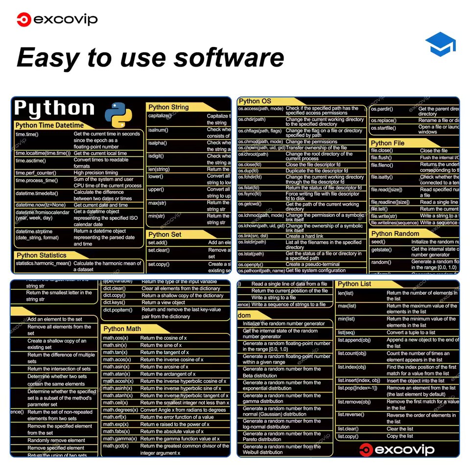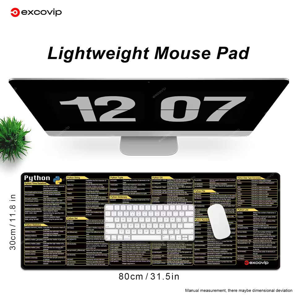 EXCO Python Programing Mouse Pad Large Shortcuts Cheat Sheet Keyboard Mousepad Stitched Edge Non-Slip Base Desk Mat for Engineer