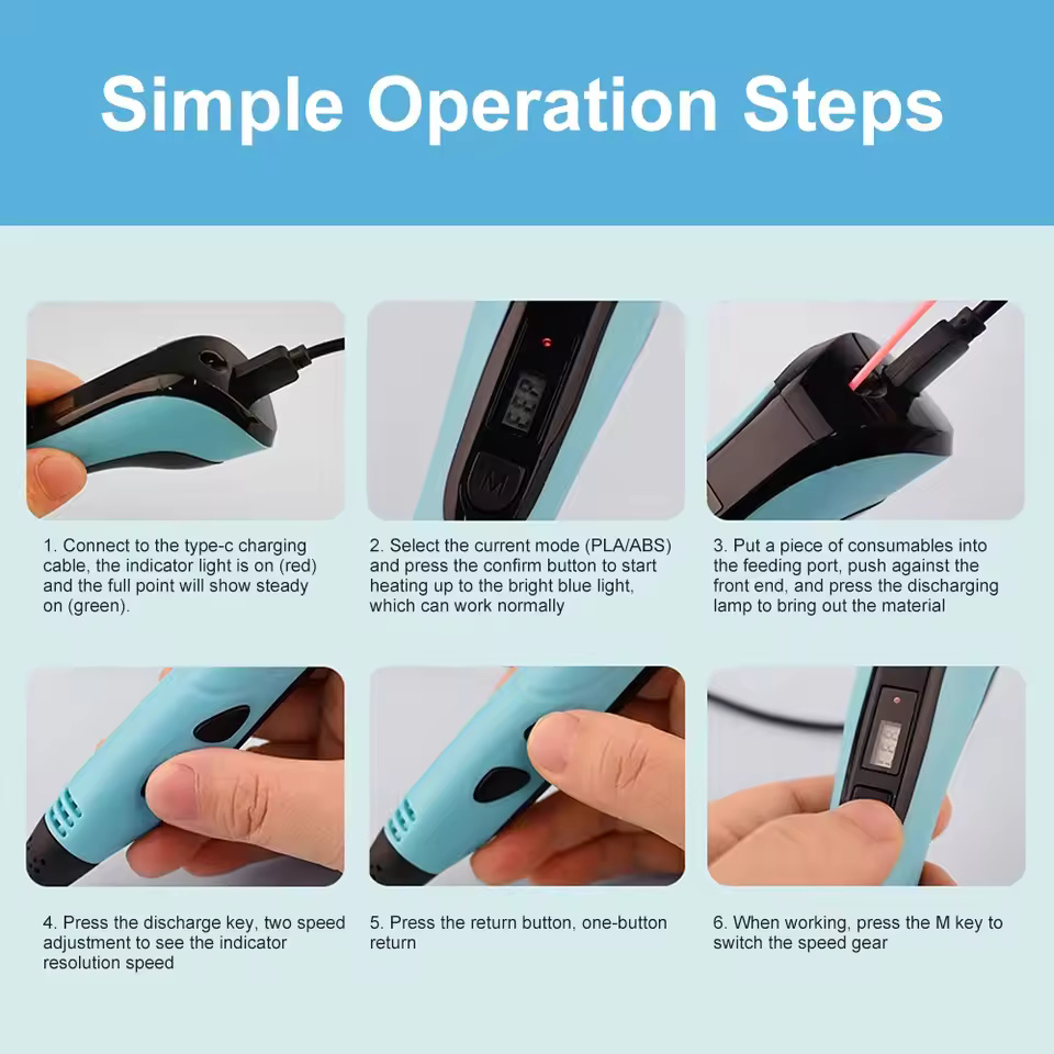 New 3D Printing Pen Set for Kids – Includes Power Supply, PLA Filament & Travel Case | Perfect Birthday & Christmas Gift